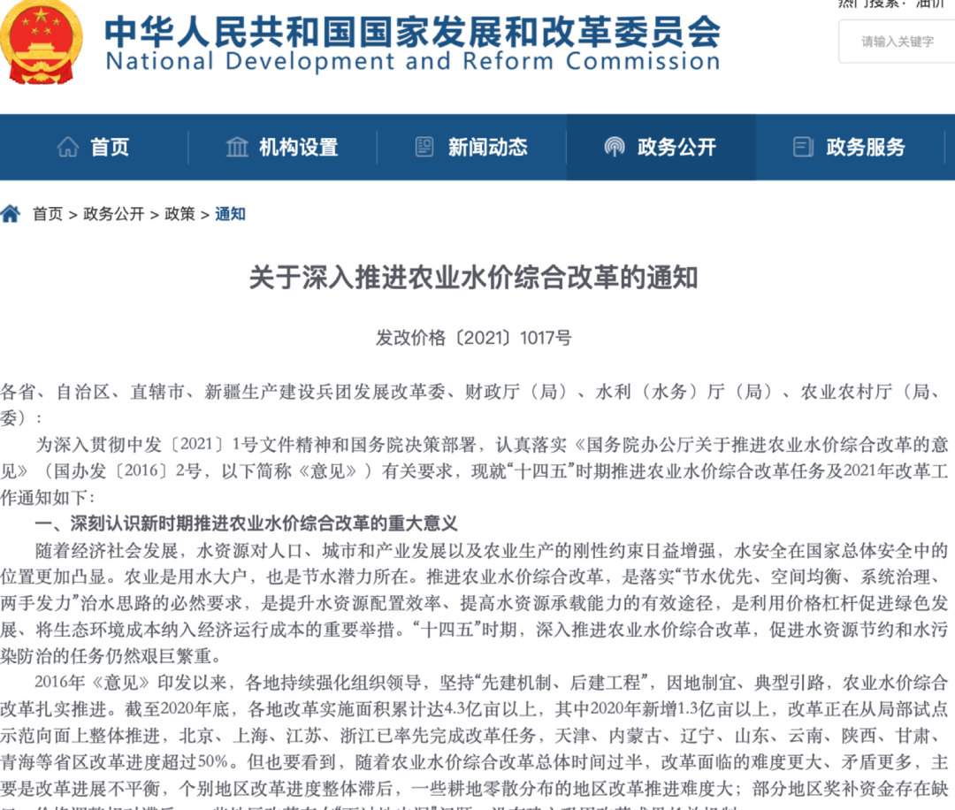 1、国家发展改革委员会关于深入推进农业水价综合改革的通知
