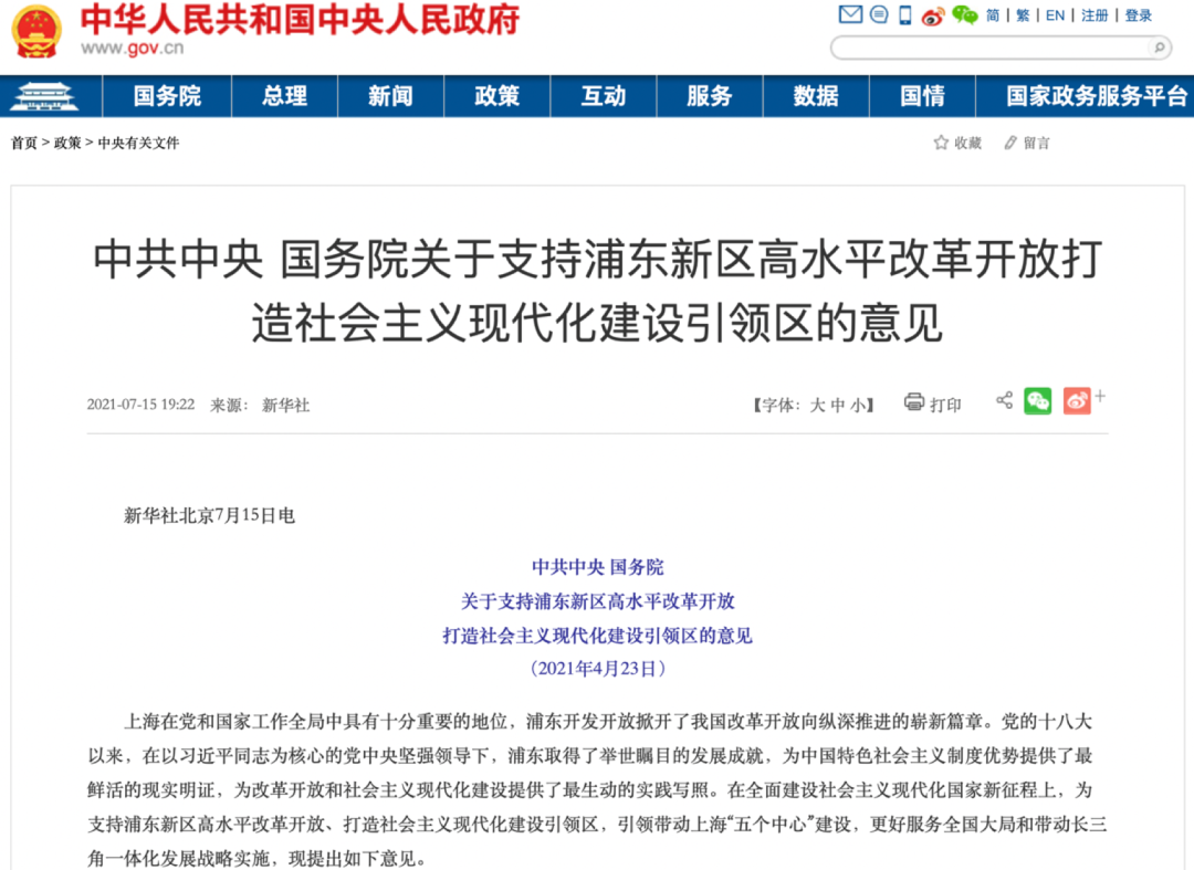 2、国务院国务院关于支持浦东新区高水平改革开放打造社会主义现代化建设引领区的意见