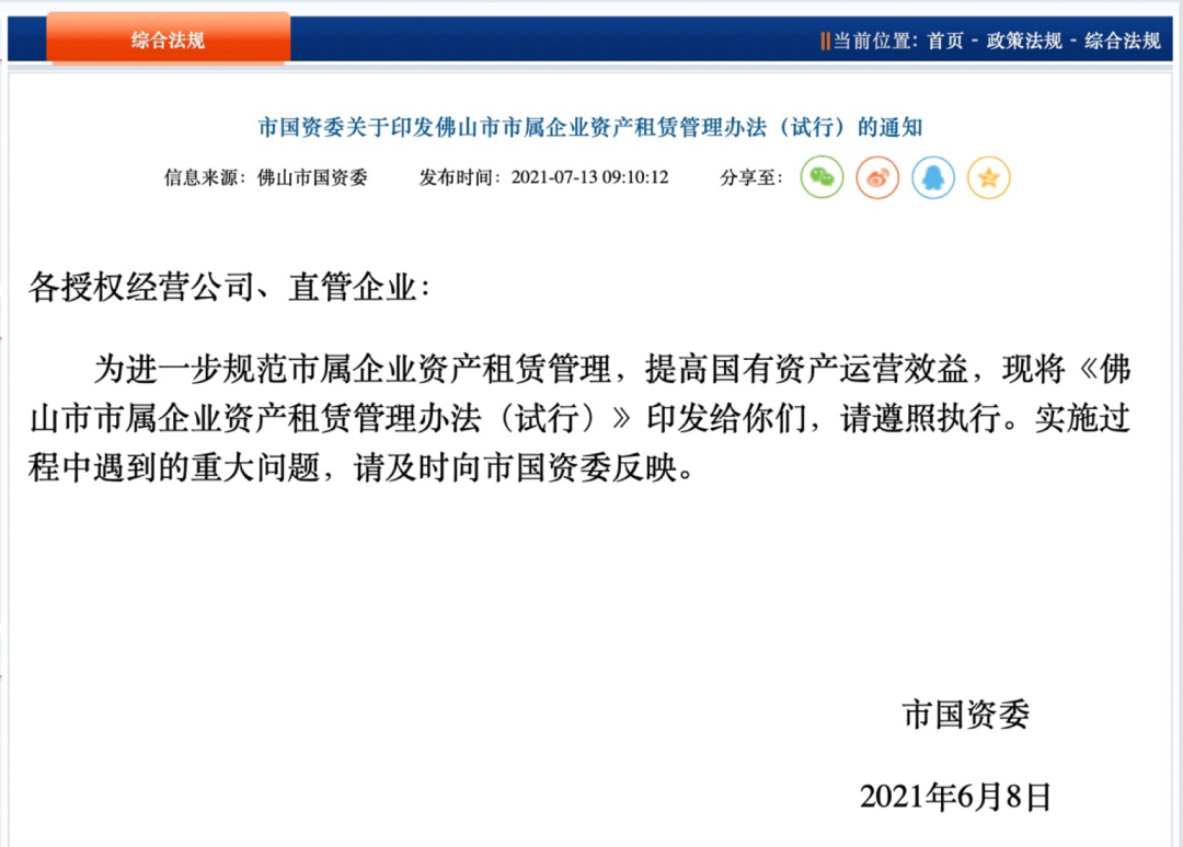 3、佛山市国资委关于印发佛山市市属企业资产租赁管理办法(试行)的通知 |