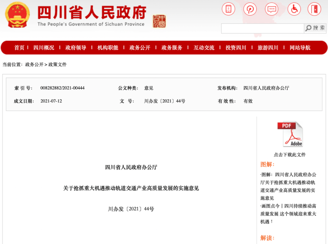 4、四川省人民政府办公厅关于抢抓重大机遇推动轨道交通产业高质量发展的实施意见 |