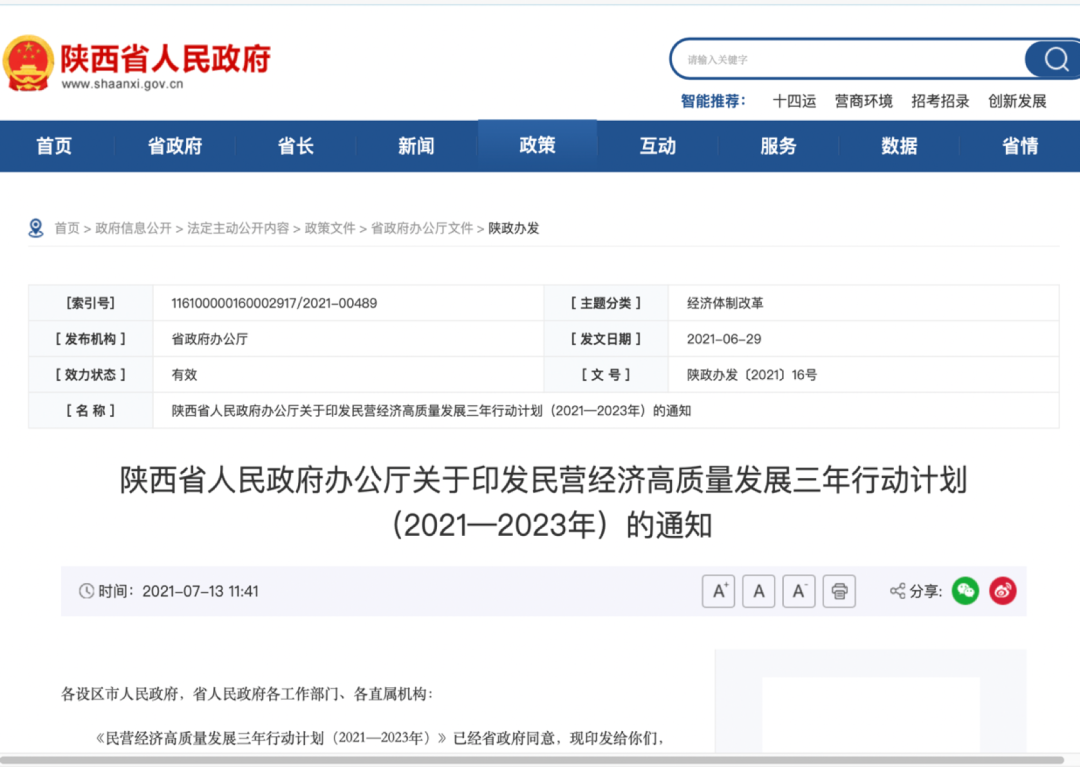5、陕西省人民政府办公厅关于印发民营经济高质量发展三年行动计划(2021-2021年)的通知
