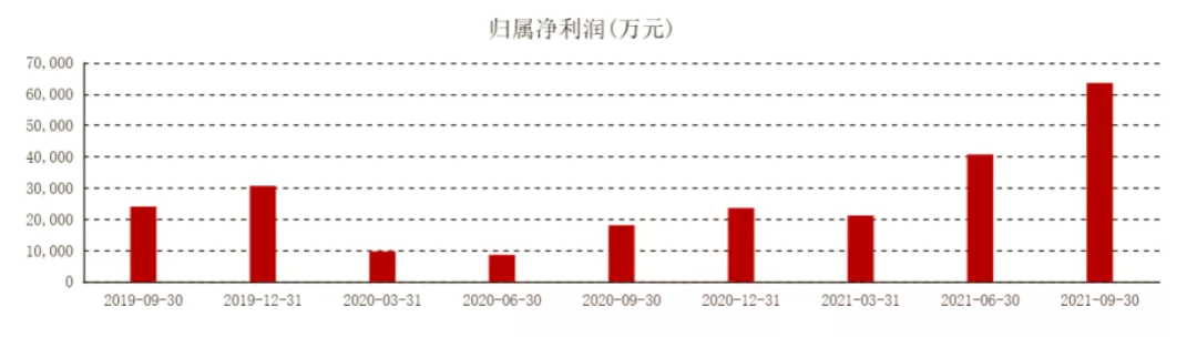 图表3-3 2019.9-2021.9年航锦科技每季归属净利润