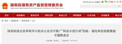 1、国务院国企改革领导小组办公室召开推广“科改示范行动”经验、强化科技创新激励专题推进会