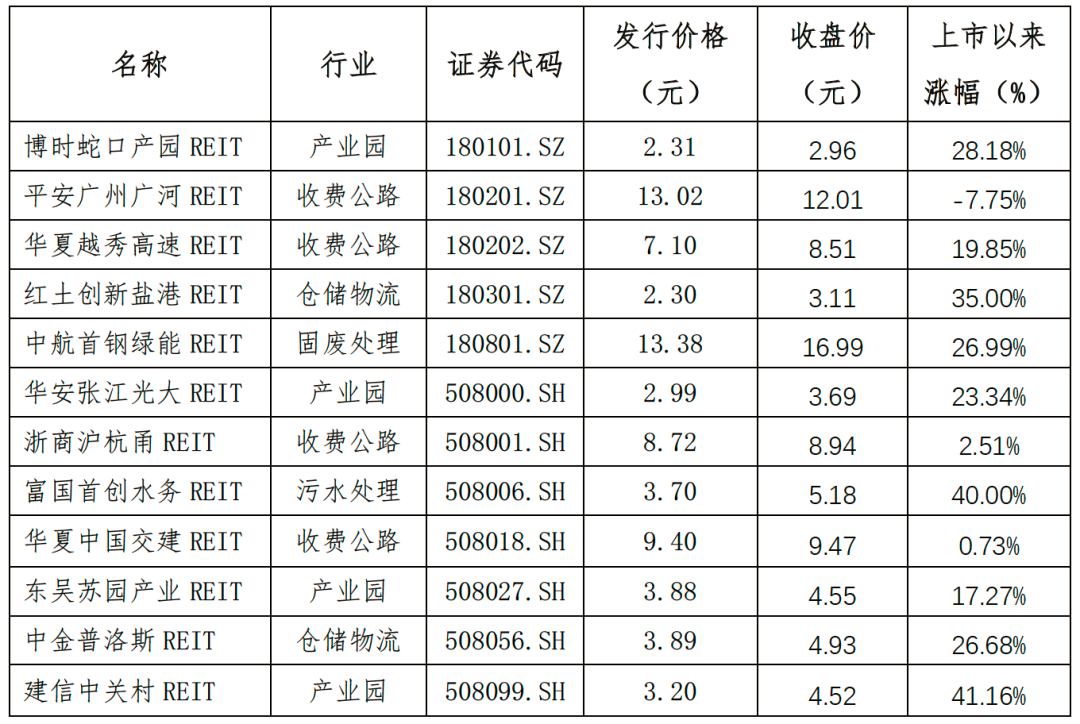 12只公募REITs市场表现(截止6月20日) |