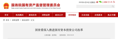 1、国资委深入推进国有资本投资公司改革