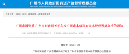 1、广州市国资委 广州市财政局关于印发广州市本级国有资本经营预算办法的通知 |