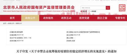 为贯彻落实党中央“疫情要防住、经济要稳住、发展要安全”的要求和国家、北京市稳经济相关政策措施,高效统筹疫情防控和经济发展,确保市属企业经济运行在合理区间,市国资委制定印发了《关于市管企业统筹做好疫情防控,稳定经济增长的实施意见》(以下简称《实施意见》)。