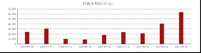 图2 2019.9-2021.9年航锦科技每季归属净利润