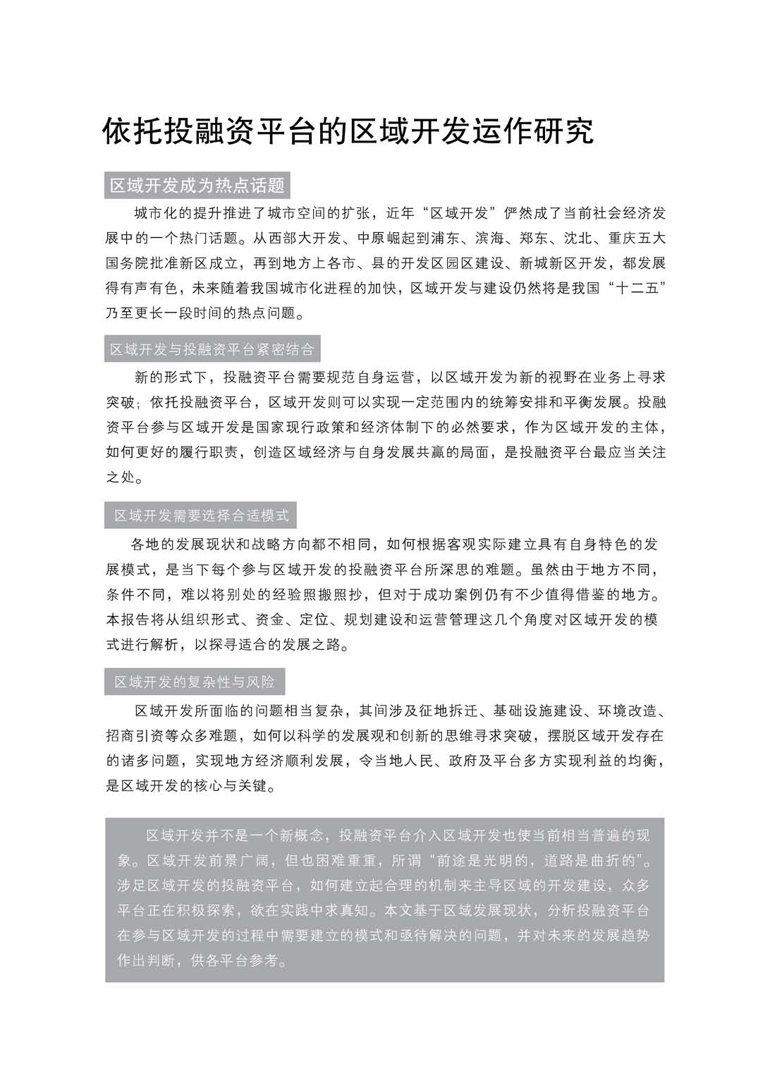 当前位置 : 首页 》卓远视角 》报告 》第四期 依托投融资平台的区域开发运作研究报告