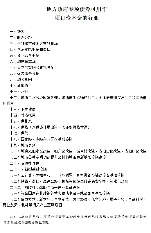 同时《意见》将新质生产力、传统基础设施改造,以及卫生健康、养老托育、省级产业园区基础设施等纳入专项债券用作项目资本金范围。可用作项目资本金的专项债券规模上限由该省份用于项目建设专项债券规模的25%提高至30%。
