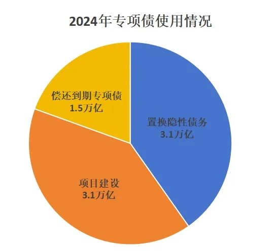 从2024年数据来看,专项债券主要用于项目建设、置换隐性债务、偿还到期专项债券。