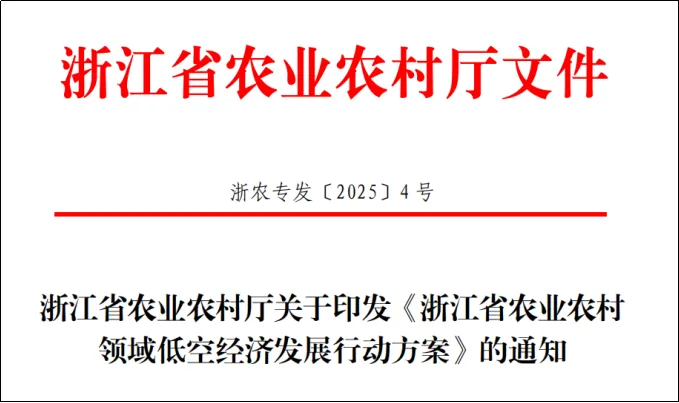 政策速递:近日,浙江省农业农村厅印发《浙江省农业农村领域低空经济发展行动方案》。《行动方案》提出,到2027年,农业农村领域低空经济发展新基建、新应用、新格局基本形成,省级现代化农事服务中心农用无人机配置全覆盖,全省农用无人机保有量10000台以上,农用无人机作业面积6500万亩次以上,建设农业生产“低空+地面”一体智能监测点100个,无人机乡村巡查巡检村域覆盖率30%以上。