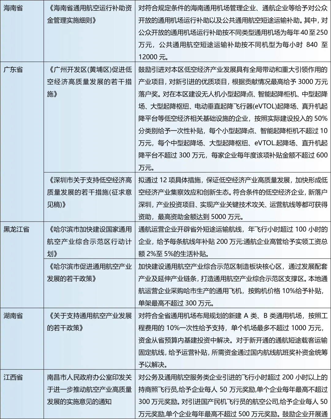 低空经济行业相关补贴支持政策