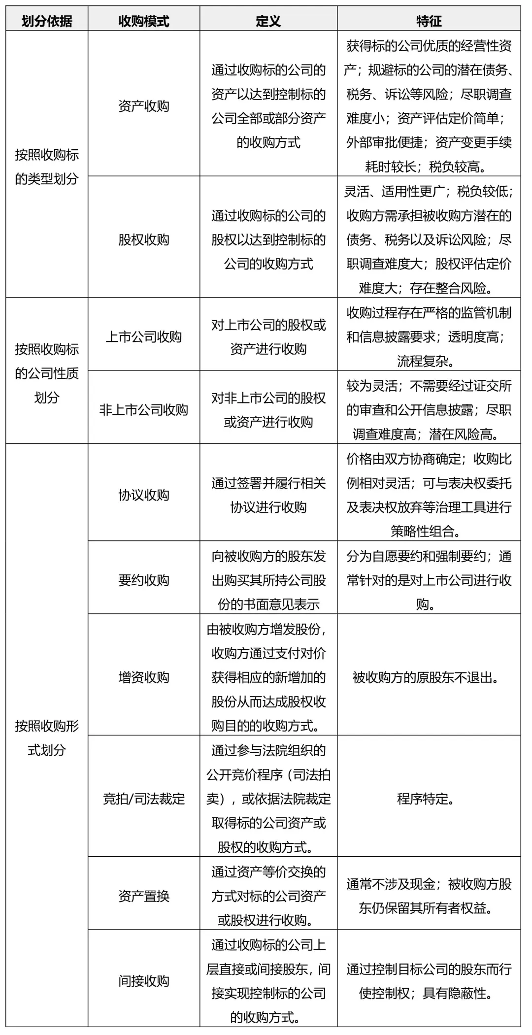 按照收购形式划分