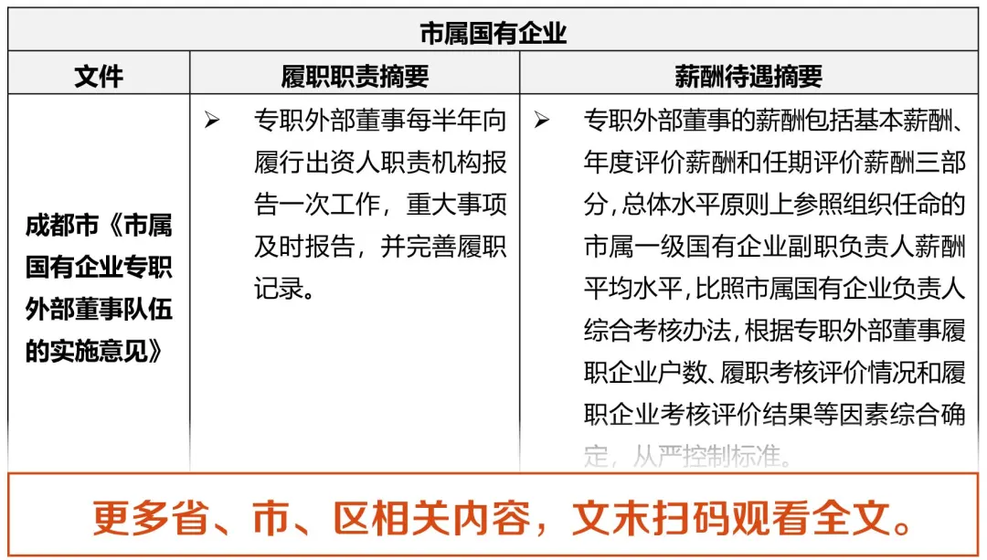 注:因篇幅限制,本文未完整展示各省、市、区关于外部董事任职资格、选聘程序、履职待遇及考核评价的具体管理办法,相关典型案例等内容,如需获取完整政策资料及详细解读,请扫描下方二维码下载全文。
