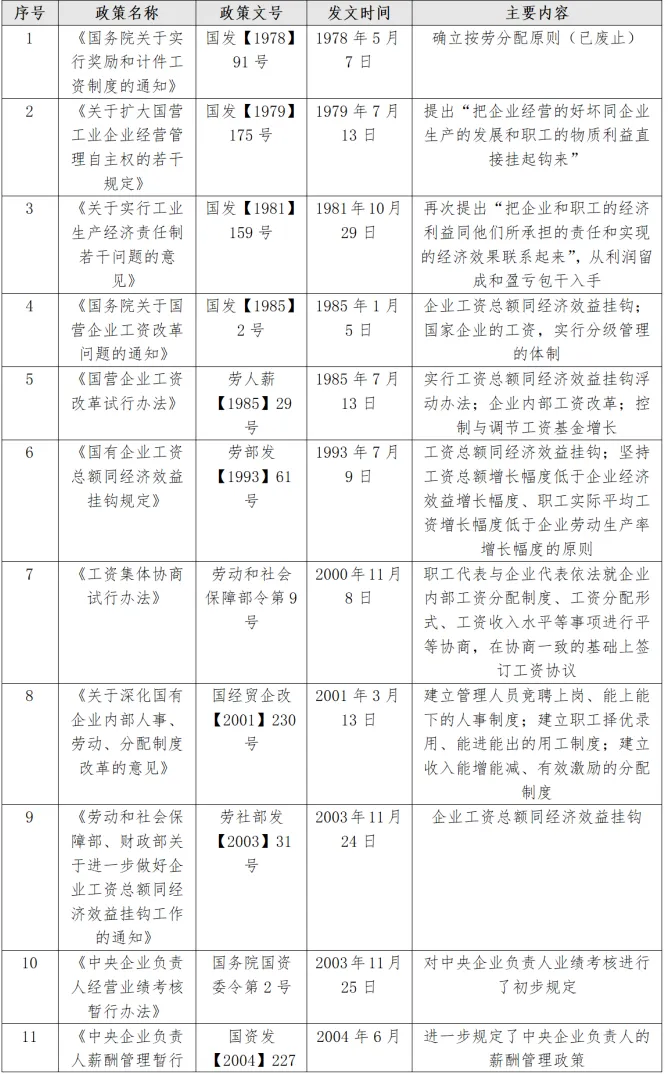 国有企业分配机制改革一直是国有企业改革的重点工作之一,国家就相关工作出台了一系列政策文件,为国有企业分配机制改革提供了制度保障和方向指引,本文根据时间脉络梳理了国家层面出台的相关政策文件。
