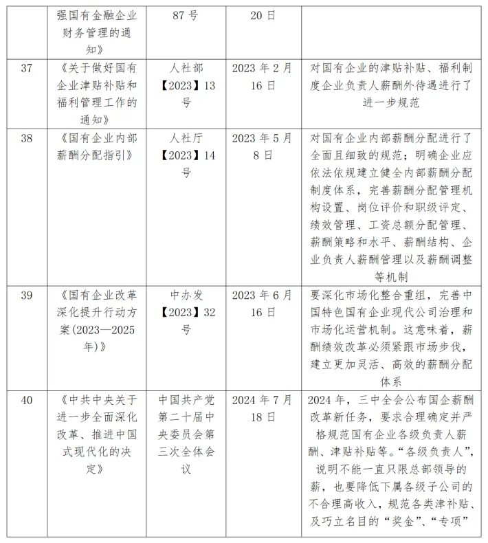 (1)《国有企业内部薪酬分配指引》人社厅【2023】14号