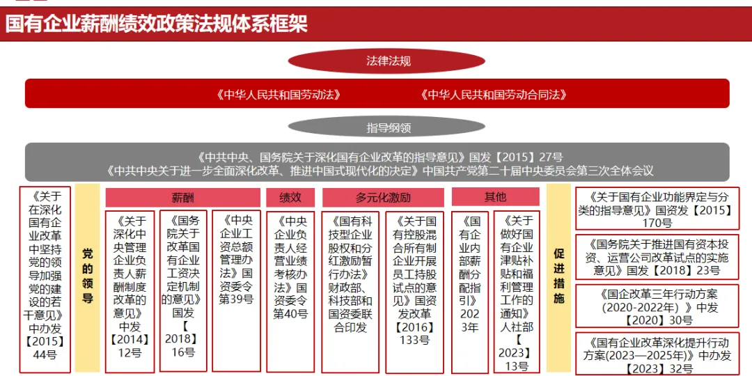 · 要求国企建立岗位价值评估体系,推行“以岗定薪、按绩取酬”。