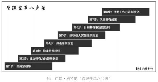 企业变革一直都是企业管理领域的中的一个重要议题,关于企业变革,哈佛商学院著名变革专家约翰·科特教授提出了著名的“企业变革八步法”,确立了企业变革的方法论,具体如图: