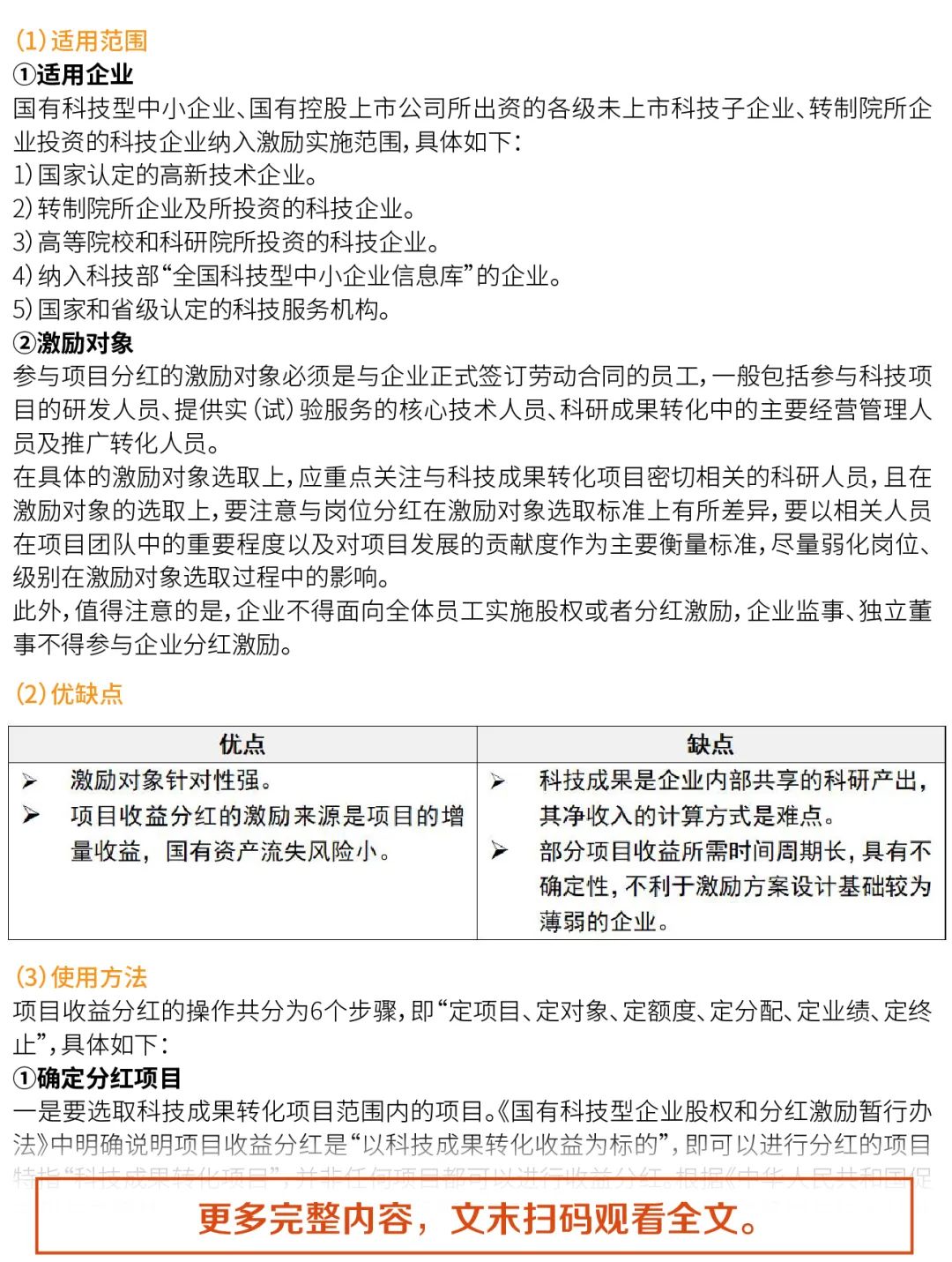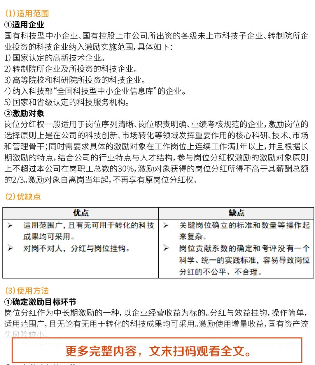 岗位分红主要以企业经营收益为标的,作为中长期激励的一种,有效益就可以分红,操作相对简单,适用范围广,且有无可用于转化的科技成果均可采用。激励部分也是增量收益,因此国有资产流失风险较小。但是在具体实施过程中,最终受到激励的通常是上层的一部分员工,不适合普惠制激励需求的企业,且激励的额度受到限制,激励效果有限。