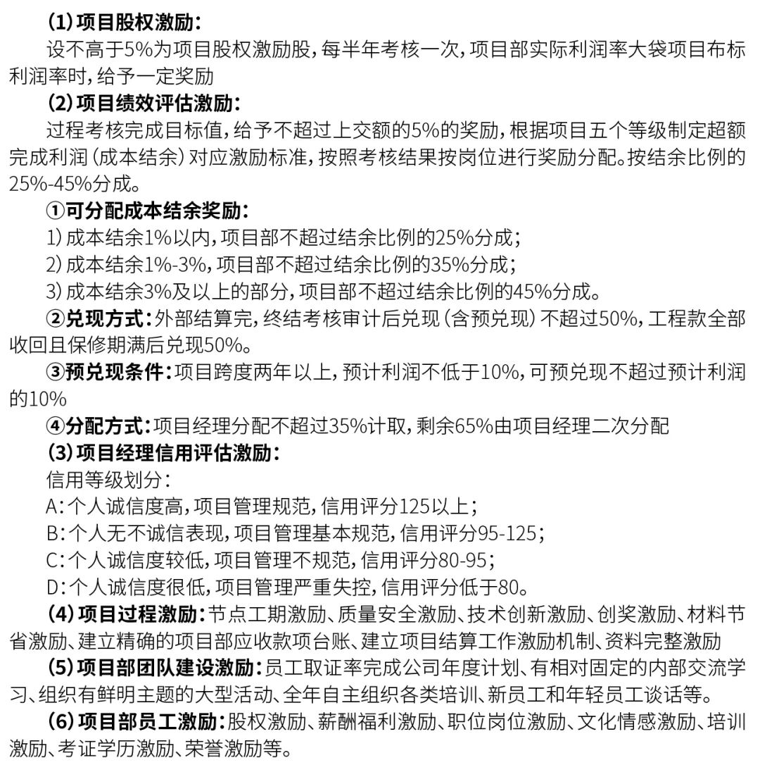 1、重点关注政策依据。企业能不能实施中长期激励的关键,取决于是否符合政策依据。从政策的角度出发,结合城投公司实际情况,三大政策虽然并不贴合,但是某些下属控股公司在一定情况下依旧可以适用,而超额利润分享机制因其限制性较低,对城投公司而言较为适用,项目跟投机制可以常识性探索。由于虚拟股权政策及机制尚不明确,且实施较为复杂,建议暂时不予考虑。