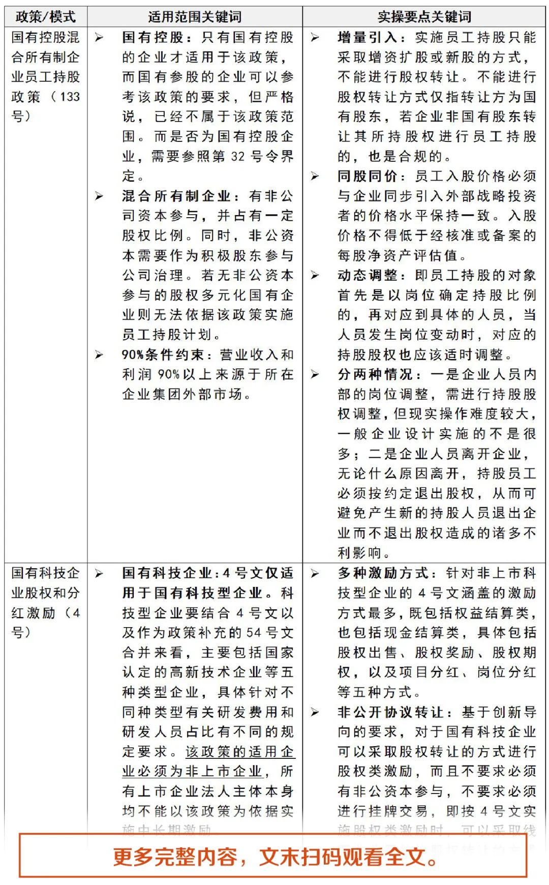 3、一企一策循序渐进。虽然政策提供了相关要求,且本文也对相关模式工具的使用进行了介绍,但是企业具体如何实施建议一企一策。上述第1点中也已提到,城投公司较为适用超额利润分享机制,而某些下属控股公司可以视情况适用三大政策之一,因此建议如下: