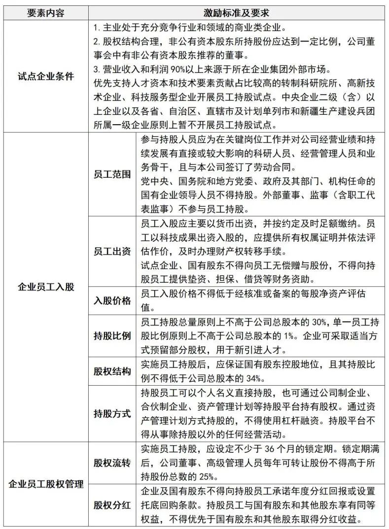 附件3:国有控股混合所有制企业员工持股标准及要求