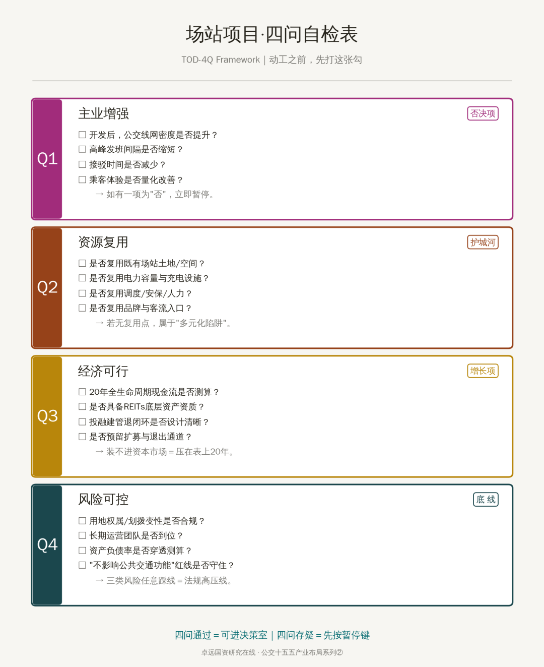 图2 · 场站项目四问自检表:决策室的最低起步线